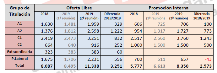 "En comparación con esta misma oferta de 2018, se pierden 200 plazas de ingreso libre y se ganan 636 de promoción interna."