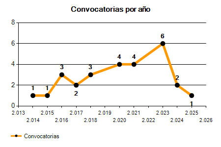 2 Convocatorias | 1 Convocatorias | -50,00% |