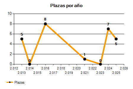 En los siguientes gráficos se puede ver la evolución del número de convocatorias y plazas convocadas para la profesión de Auditor de los últimos años pudiéndose observar un crecimiento y una caída del 0,00% desde el año 2013 hasta el 2025 en número de convocatorias y un crecimiento y una caída del 0,00% en número de plazas convocadas.