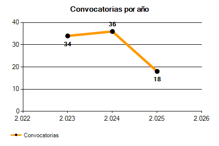 | 36 Convocatorias | 18 Convocatorias | -50,00% |