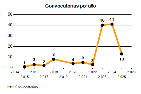 41 Convocatorias | 13 Convocatorias | -68,29% |