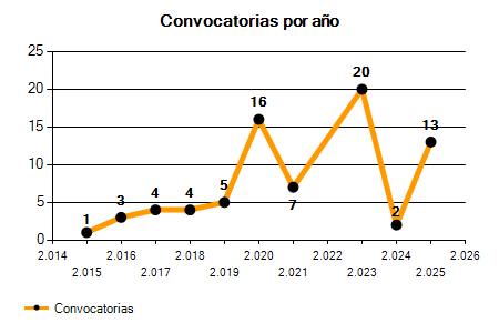 2 Convocatorias | 13 Convocatorias | +550,00% |
