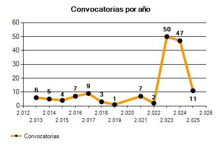 47 Convocatorias | 11 Convocatorias | -76,60% |
