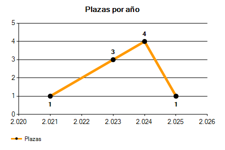 En los siguientes gráficos se puede ver la evolución del número de convocatorias y plazas convocadas para la profesión de Capataz de Brigada de los últimos años pudiéndose observar un crecimiento y una caída del 0,00% desde el año 2021 hasta el 2025 en número de convocatorias y un crecimiento y una caída del 0,00% en número de plazas convocadas.