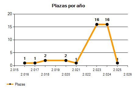 En los siguientes gráficos se puede ver la evolución del número de convocatorias y plazas convocadas para la profesión de Cerrajería de los últimos años pudiéndose observar un crecimiento y una caída del 0,00% desde el año 2016 hasta el 2025 en número de convocatorias y un crecimiento y una caída del 0,00% en número de plazas convocadas.