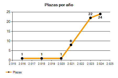 En los siguientes gráficos se puede ver la evolución del número de convocatorias y plazas convocadas para la profesión de Conductor Mecánico de Grúa de los últimos años pudiéndose observar una caída del 100,00% desde el año 2016 hasta el 2025 en número de convocatorias y una caída del 100,00% en número de plazas convocadas.
