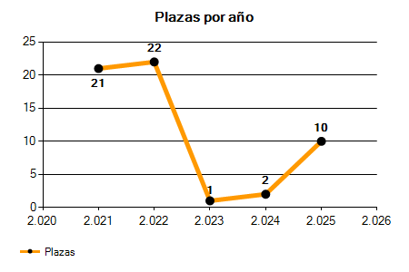 En los siguientes gráficos se puede ver la evolución del número de convocatorias y plazas convocadas para la profesión de Costurero/a de los últimos años pudiéndose observar un crecimiento del 200,00% desde el año 2021 hasta el 2025 en número de convocatorias y una caída del 52,38% en número de plazas convocadas.