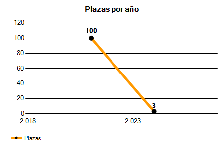 En los siguientes gráficos se puede ver la evolución del número de convocatorias y plazas convocadas para la profesión de Cuidador Técnico de Servicios Asistenciales de los últimos años pudiéndose observar una caída del 100,00% desde el año 2021 hasta el 2025 en número de convocatorias y una caída del 100,00% en número de plazas convocadas.