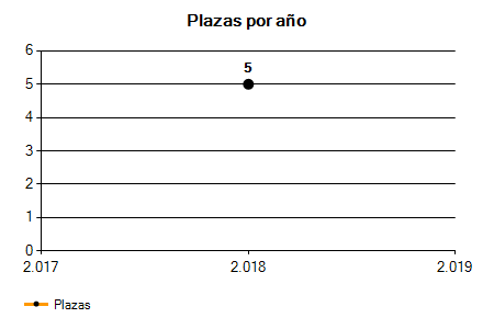 En los siguientes gráficos se puede ver la evolución del número de convocatorias y plazas convocadas para la profesión de Desarrollo Agrario y Pesquero de los últimos años pudiéndose observar una caída del 100,00% desde el año 2018 hasta el 2025 en número de convocatorias y una caída del 100,00% en número de plazas convocadas.