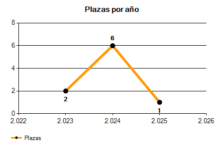 En los siguientes gráficos se puede ver la evolución del número de convocatorias y plazas convocadas para la profesión de Director/a Centro Ocupacional de los últimos años pudiéndose observar una caída del 50,00% desde el año 2023 hasta el 2025 en número de convocatorias y una caída del 50,00% en número de plazas convocadas.