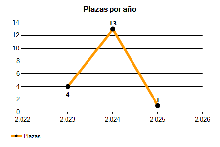 En los siguientes gráficos se puede ver la evolución del número de convocatorias y plazas convocadas para la profesión de Encargado/a Jardinería de los últimos años pudiéndose observar una caída del 75,00% desde el año 2023 hasta el 2025 en número de convocatorias y una caída del 75,00% en número de plazas convocadas.