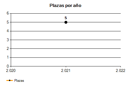 En los siguientes gráficos se puede ver la evolución del número de convocatorias y plazas convocadas para la profesión de Estenotipista Taquígrafo/a de los últimos años pudiéndose observar una caída del 100,00% desde el año 2021 hasta el 2025 en número de convocatorias y una caída del 100,00% en número de plazas convocadas.