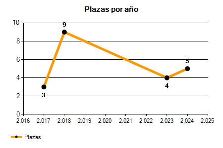 En los siguientes gráficos se puede ver la evolución del número de convocatorias y plazas convocadas para la profesión de Inspección Farmacéutica de los últimos años pudiéndose observar una caída del 100,00% desde el año 2017 hasta el 2025 en número de convocatorias y una caída del 100,00% en número de plazas convocadas.