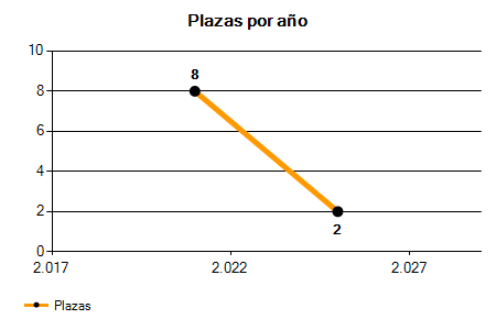En los siguientes gráficos se puede ver la evolución del número de convocatorias y plazas convocadas para la profesión de Inspector de Mercados y Vía Pública de los últimos años pudiéndose observar un crecimiento y una caída del 0,00% desde el año 2021 hasta el 2025 en número de convocatorias y una caída del 75,00% en número de plazas convocadas.