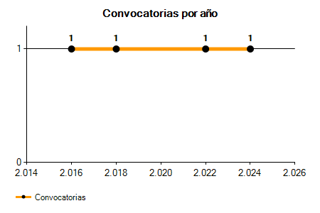 En los siguientes gráficos se puede ver la evolución del número de convocatorias y plazas convocadas para la profesión de Interprete de los últimos años pudiéndose observar una caída del 100,00% desde el año 2016 hasta el 2025 en número de convocatorias y una caída del 100,00% en número de plazas convocadas.