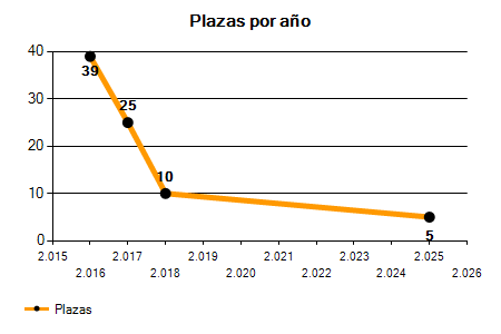 En los siguientes gráficos se puede ver la evolución del número de convocatorias y plazas convocadas para la profesión de Investigación Agraria y Pesquera de los últimos años pudiéndose observar una caída del 66,67% desde el año 2016 hasta el 2025 en número de convocatorias y una caída del 87,18% en número de plazas convocadas.