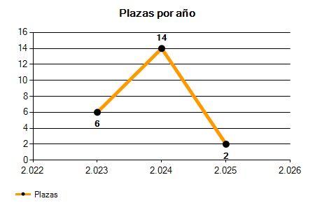 En los siguientes gráficos se puede ver la evolución del número de convocatorias y plazas convocadas para la profesión de Jefe de Recursos Humanos de los últimos años pudiéndose observar una caída del 66,67% desde el año 2023 hasta el 2025 en número de convocatorias y una caída del 66,67% en número de plazas convocadas.