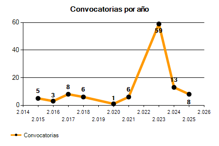 13 Convocatorias | 8 Convocatorias | -38,46% |