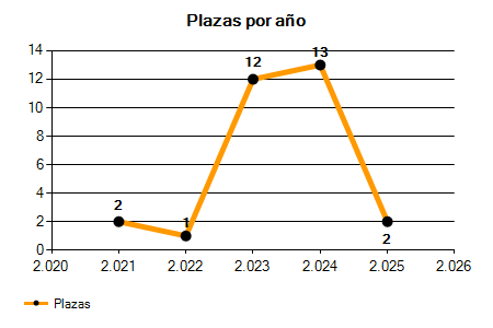 En los siguientes gráficos se puede ver la evolución del número de convocatorias y plazas convocadas para la profesión de Lector/a de Contadores de los últimos años pudiéndose observar un crecimiento y una caída del 0,00% desde el año 2021 hasta el 2025 en número de convocatorias y un crecimiento y una caída del 0,00% en número de plazas convocadas.