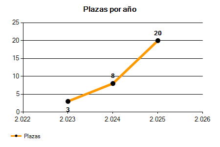 En los siguientes gráficos se puede ver la evolución del número de convocatorias y plazas convocadas para la profesión de Licenciado/a de los últimos años pudiéndose observar un crecimiento del 166,67% desde el año 2023 hasta el 2025 en número de convocatorias y un crecimiento del 566,67% en número de plazas convocadas.