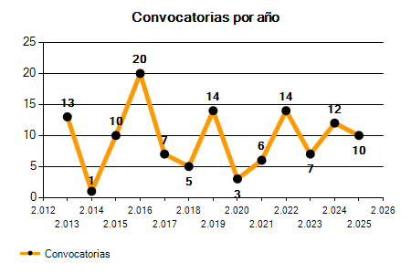 12 Convocatorias | 10 Convocatorias | -16,67% |