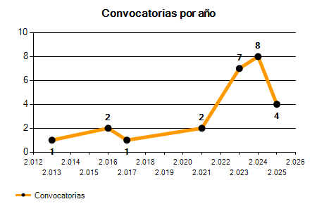 | 8 Convocatorias | 4 Convocatorias | -50,00% |