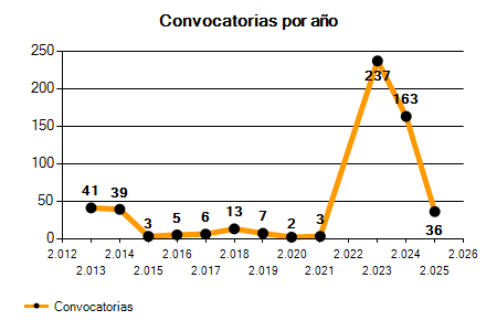 163 Convocatorias | 36 Convocatorias | -77,91% |