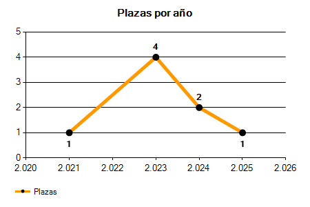 En los siguientes gráficos se puede ver la evolución del número de convocatorias y plazas convocadas para la profesión de Monitor/a de Taller de Restauración de los últimos años pudiéndose observar un crecimiento y una caída del 0,00% desde el año 2021 hasta el 2025 en número de convocatorias y un crecimiento y una caída del 0,00% en número de plazas convocadas.