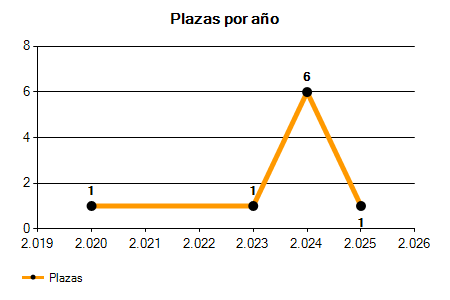 En los siguientes gráficos se puede ver la evolución del número de convocatorias y plazas convocadas para la profesión de Oficial/Oficiala de Climatización de los últimos años pudiéndose observar un crecimiento y una caída del 0,00% desde el año 2020 hasta el 2025 en número de convocatorias y un crecimiento y una caída del 0,00% en número de plazas convocadas.