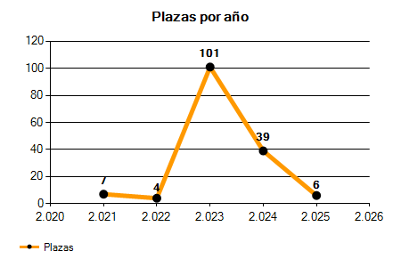 En los siguientes gráficos se puede ver la evolución del número de convocatorias y plazas convocadas para la profesión de Operario/a de la Brigada Municipal de los últimos años pudiéndose observar un crecimiento del 300,00% desde el año 2021 hasta el 2025 en número de convocatorias y una caída del 14,29% en número de plazas convocadas.