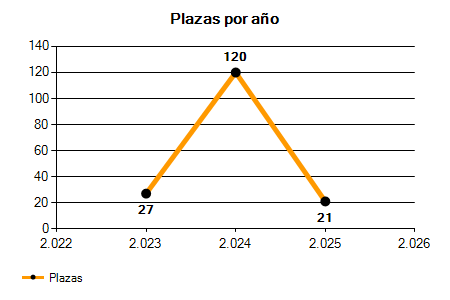 En los siguientes gráficos se puede ver la evolución del número de convocatorias y plazas convocadas para la profesión de Operarios de Obras de los últimos años pudiéndose observar una caída del 35,71% desde el año 2023 hasta el 2025 en número de convocatorias y una caída del 22,22% en número de plazas convocadas.