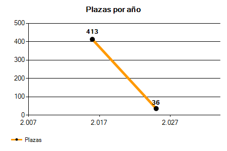 En los siguientes gráficos se puede ver la evolución del número de convocatorias y plazas convocadas para la profesión de Pediatra de los últimos años pudiéndose observar una caída del 57,14% desde el año 2015 hasta el 2025 en número de convocatorias y una caída del 11,00% en número de plazas convocadas.