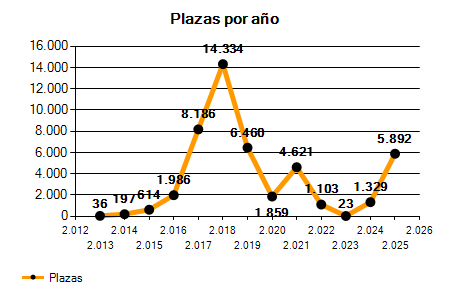 1.329 Plazas | 5.892 Plazas | +343,34% |