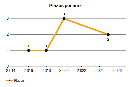 En los siguientes gráficos se puede ver la evolución del número de convocatorias y plazas convocadas para la profesión de Profesores Escuelas Oficiales de Idiomas. Japonés de los últimos años pudiéndose observar un crecimiento y una caída del 0,00% desde el año 2016 hasta el 2025 en número de convocatorias y un crecimiento del 100,00% en número de plazas convocadas.