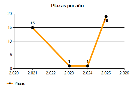 En los siguientes gráficos se puede ver la evolución del número de convocatorias y plazas convocadas para la profesión de Psicología Sanitaria de los últimos años pudiéndose observar un crecimiento del 200,00% desde el año 2021 hasta el 2025 en número de convocatorias y un crecimiento del 26,67% en número de plazas convocadas.