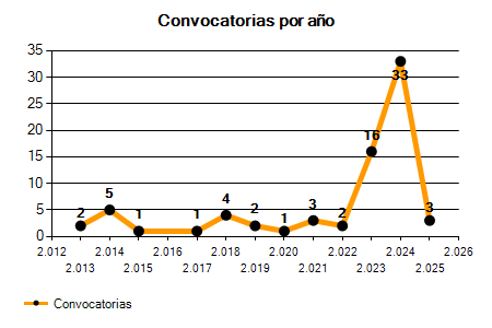 33 Convocatorias | 3 Convocatorias | -90,91% |
