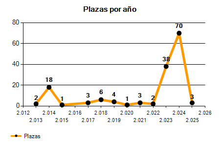 En los siguientes gráficos se puede ver la evolución del número de convocatorias y plazas convocadas para la profesión de Recaudador de los últimos años pudiéndose observar un crecimiento del 50,00% desde el año 2013 hasta el 2025 en número de convocatorias y un crecimiento del 50,00% en número de plazas convocadas.