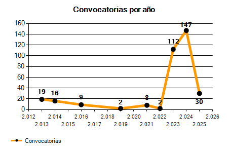 | 147 Convocatorias | 30 Convocatorias | -79,59% |