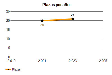 En los siguientes gráficos se puede ver la evolución del número de convocatorias y plazas convocadas para la profesión de Técnico/a Auxiliar en Tecnologías de la Información y Comunicación de los últimos años pudiéndose observar una caída del 100,00% desde el año 2021 hasta el 2025 en número de convocatorias y una caída del 100,00% en número de plazas convocadas.