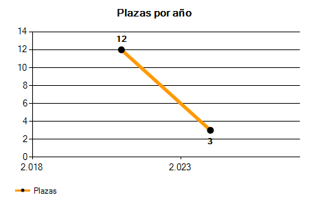En los siguientes gráficos se puede ver la evolución del número de convocatorias y plazas convocadas para la profesión de Técnico/a Control de Plagas de los últimos años pudiéndose observar una caída del 100,00% desde el año 2021 hasta el 2025 en número de convocatorias y una caída del 100,00% en número de plazas convocadas.