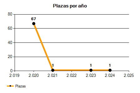En los siguientes gráficos se puede ver la evolución del número de convocatorias y plazas convocadas para la profesión de Técnico/a de Grado Medio en Electricidad y Electrónica de los últimos años pudiéndose observar una caída del 100,00% desde el año 2020 hasta el 2025 en número de convocatorias y una caída del 100,00% en número de plazas convocadas.
