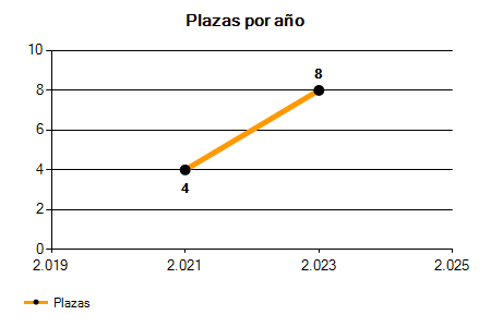 En los siguientes gráficos se puede ver la evolución del número de convocatorias y plazas convocadas para la profesión de Técnico/a de Grado Superior en Animación Sociocultural de los últimos años pudiéndose observar una caída del 100,00% desde el año 2021 hasta el 2025 en número de convocatorias y una caída del 100,00% en número de plazas convocadas.