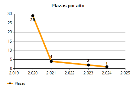En los siguientes gráficos se puede ver la evolución del número de convocatorias y plazas convocadas para la profesión de Técnico/a de Grado Superior en Electricidad y Electrónica de los últimos años pudiéndose observar una caída del 100,00% desde el año 2020 hasta el 2025 en número de convocatorias y una caída del 100,00% en número de plazas convocadas.
