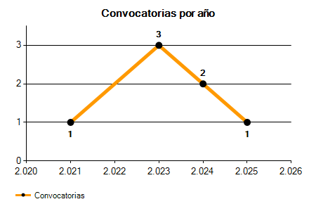 2 Convocatorias | 1 Convocatorias | -50,00% |