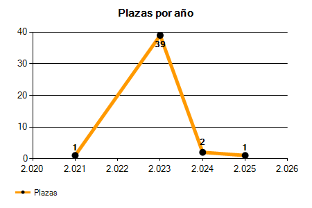 En los siguientes gráficos se puede ver la evolución del número de convocatorias y plazas convocadas para la profesión de Técnico de Control Financiero de los últimos años pudiéndose observar un crecimiento y una caída del 0,00% desde el año 2021 hasta el 2025 en número de convocatorias y un crecimiento y una caída del 0,00% en número de plazas convocadas.