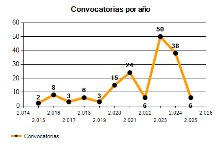 38 Convocatorias | 6 Convocatorias | -84,21% |