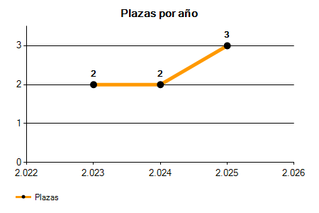 En los siguientes gráficos se puede ver la evolución del número de convocatorias y plazas convocadas para la profesión de Técnico Medio Agente de Igualdad de los últimos años pudiéndose observar un crecimiento y una caída del 0,00% desde el año 2023 hasta el 2025 en número de convocatorias y un crecimiento del 50,00% en número de plazas convocadas.