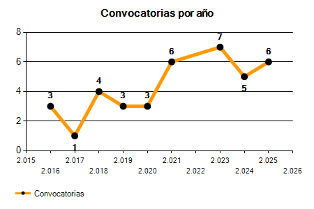 5 Convocatorias | 6 Convocatorias | +20,00% |