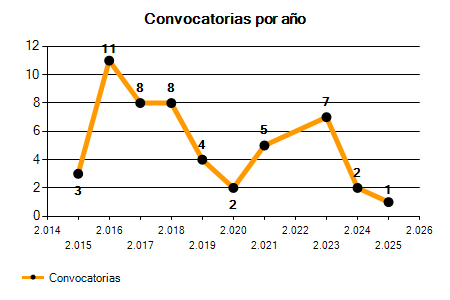 2 Convocatorias | 1 Convocatorias | -50,00% |