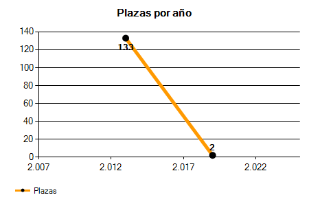 En los siguientes gráficos se puede ver la evolución del número de convocatorias y plazas convocadas para la profesión de Transportista de los últimos años pudiéndose observar una caída del 100,00% desde el año 2013 hasta el 2025 en número de convocatorias y una caída del 100,00% en número de plazas convocadas.